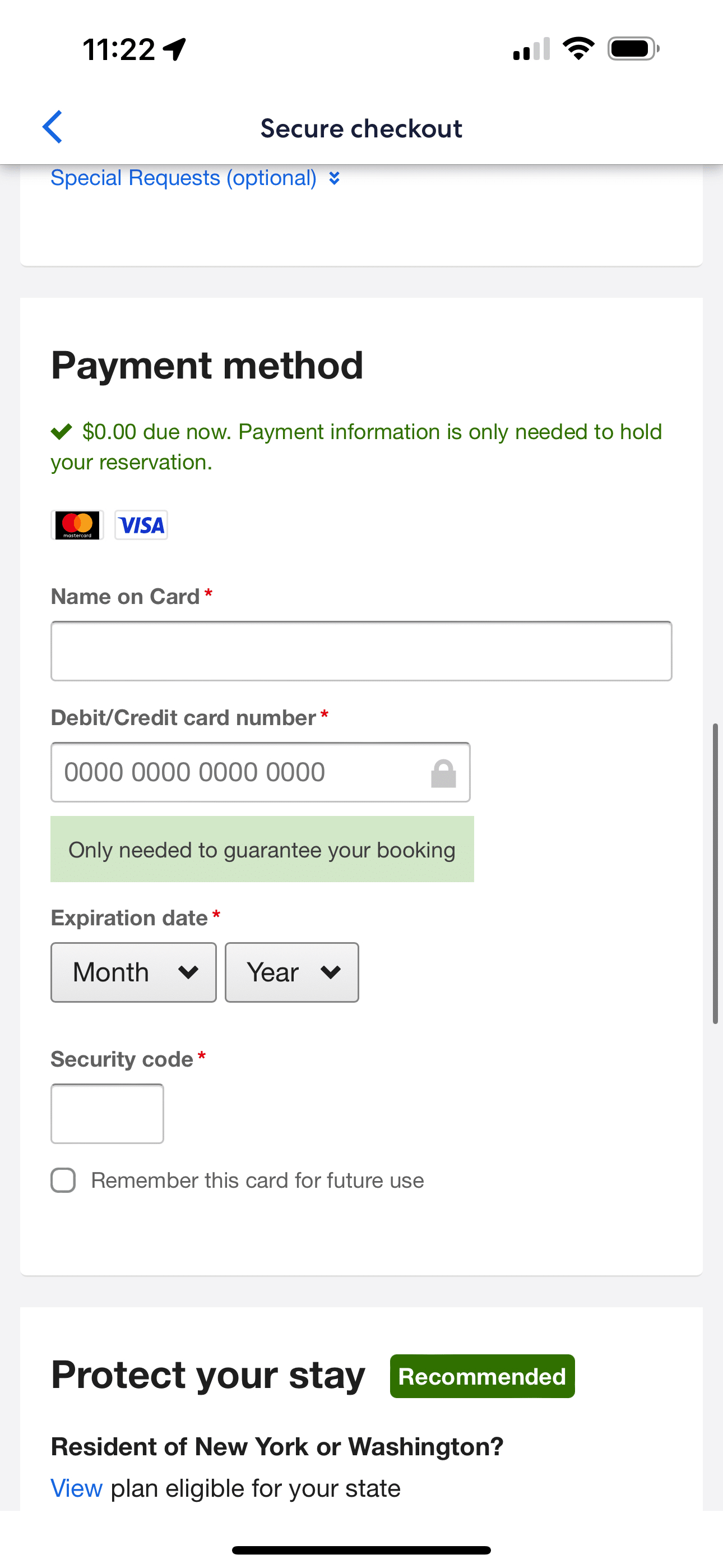 • It does not ask if you’d like to remember the card for future use.